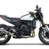 For installation, no structural modifications to the motorbike are necessary for use of the product in the approved version. It is recommended to read the instructions in the package or contact a specialized workshop. The exhaust has a removable dbkiller (noise limiter) for racing use, removing the dbkiller is not ONLY illegal, but the customer assumes responsibility for using the bike as only on circuits, without bags, without indicators and license plate holders or other parts which would conflict with the different throttle angle following the transformation into the racing version.
