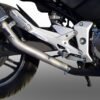 For installation, no structural modifications to the motorbike are necessary for use of the product in the approved version. It is recommended to read the instructions in the package or contact a specialized workshop. The exhaust has a removable dbkiller (noise limiter) for racing use, removing the dbkiller is not ONLY illegal, but the customer assumes responsibility for using the bike as only on circuits, without bags, without indicators and license plate holders or other parts which would conflict with the different throttle angle following the transformation into the racing version.