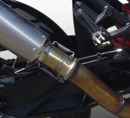 For installation, no structural modifications to the motorbike are necessary for use of the product in the approved version. It is recommended to read the instructions in the package or contact a specialized workshop. The exhaust has a removable dbkiller (noise limiter) for racing use, removing the dbkiller is not ONLY illegal, but the customer assumes responsibility for using the bike as only on circuits, without bags, without indicators and license plate holders or other parts which would conflict with the different throttle angle following the transformation into the racing version.
