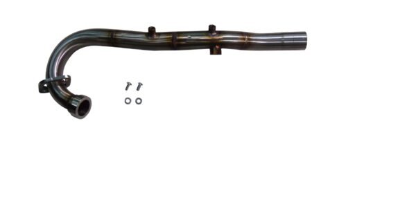 De-catalyst manifold, made of satin 304 stainless steel with visible TIG welding, also matches the original de-catalyst terminal, when the original catalyst is present in the manifold, it is therefore eliminated.