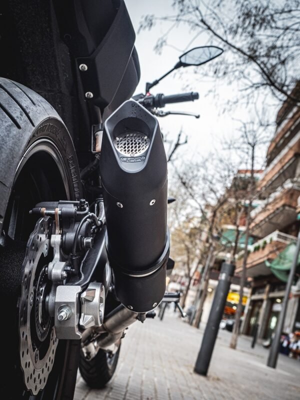 For installation, no structural modifications to the motorbike are necessary for use of the product in the approved version. It is recommended to read the instructions in the package or contact a specialized workshop. The exhaust has a removable dbkiller (noise limiter) for racing use, removing the dbkiller is not ONLY illegal, but the customer assumes responsibility for using the bike as only on circuits, without bags, without indicators and license plate holders or other parts which would conflict with the different throttle angle following the transformation into the racing version.